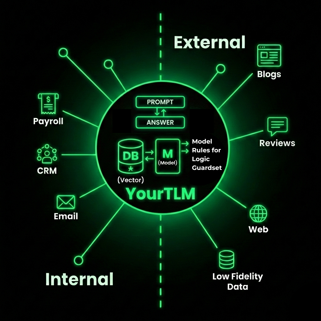 Stop sending your proprietary data into the public cloud. YourTLM is designed for your business. With trust at its core, it is a secure AI ecosystem that transforms siloed enterprise data into predictive intelligence and automated action.