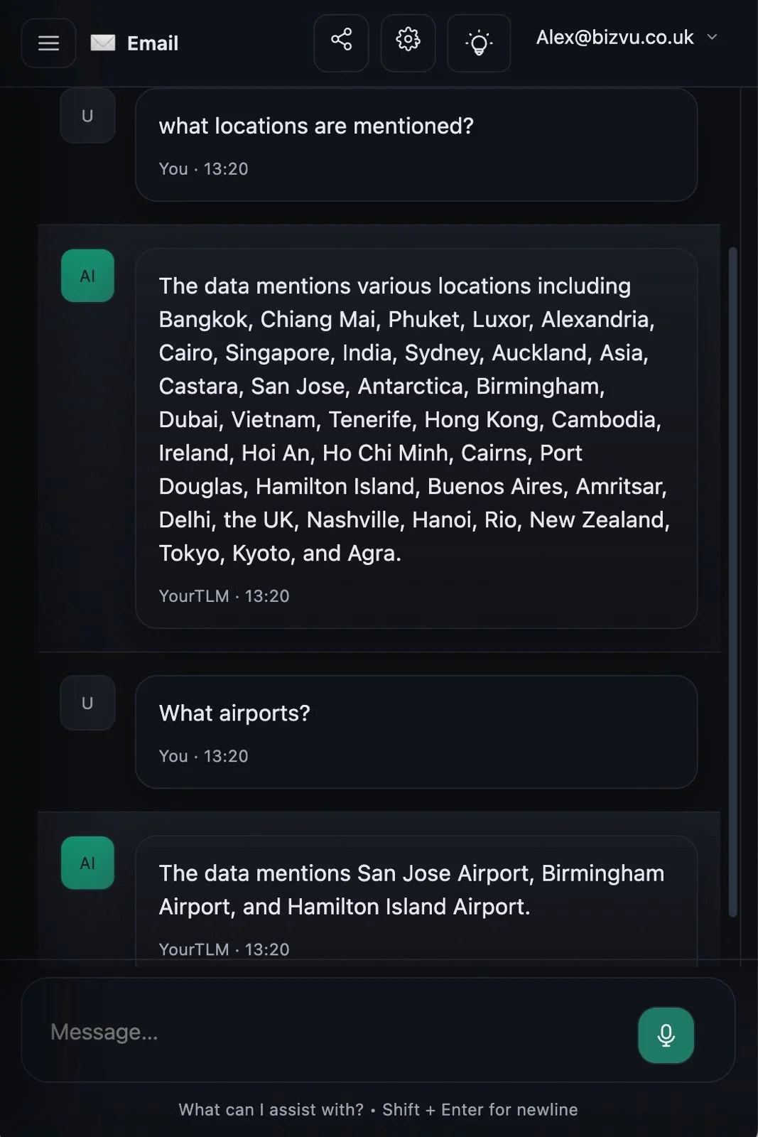 Imagine asking your own systems questions like, ‘Why did sales drop in Q3?’ or ‘What internal process errors are costing us most?’—and getting informed answers instantly, based on your data, securely. That’s YourTLM: a private AI platform that lives in your cloud or infrastructure, indexes everything from emails to documents, and turns it into an intelligent brain for your business. You don’t hand over your data—the AI stays inside your walls, giving you control, insight, and privacy all at once.